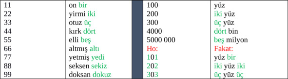 100 (yüz), 1000 (bin), 1000 000 (milyon), 1000 000 000 (milyar).