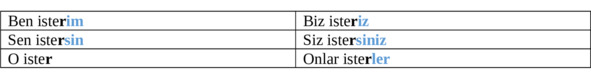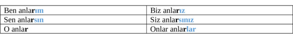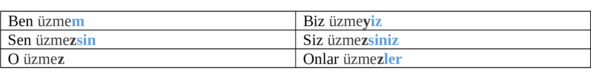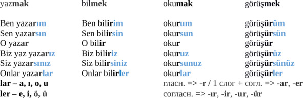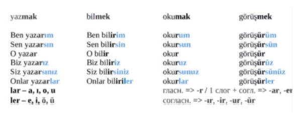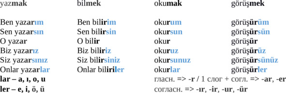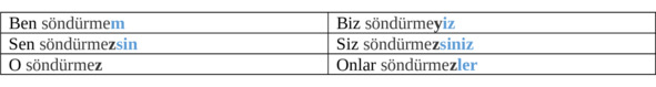 Отрицательная форма настоящего-будущего неопределенного времени (Geniş Zamanı) образуется так: