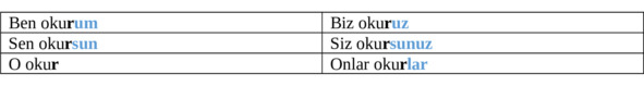 В. Поставьте глаголы в утвердительную форму настоящего-будущего неопределенного времени (Geniş Zamanı).