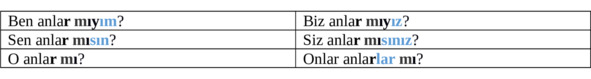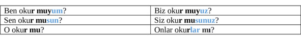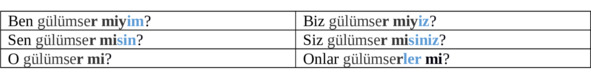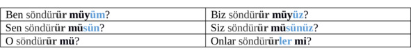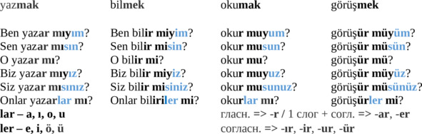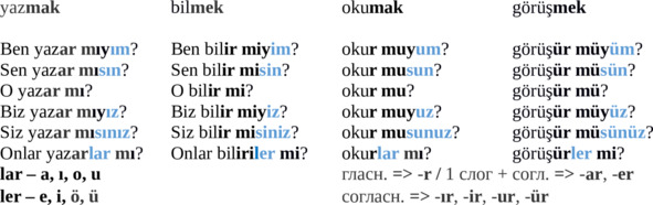 Вопросительная форма настоящего-будущего неопределенного времени (Geniş Zamanı) образуется по общему правилу.