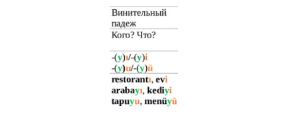 Diş.. (мн. ч. + притяжательный афф. + винительный пад.) (мои зубы) fırçalamak.. (чищу), duş (душ) almak.. (принимаю), saç.. (притяжательный афф. + винительный пад.) (мои волосы) taramak.. (причёсываю).