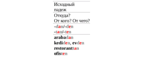 Sabah saat sekiz.. (местный пад.) (в 8 часов утра) ev.. (исходный пад.) (из дома) çıkmak.. (я выхожу).