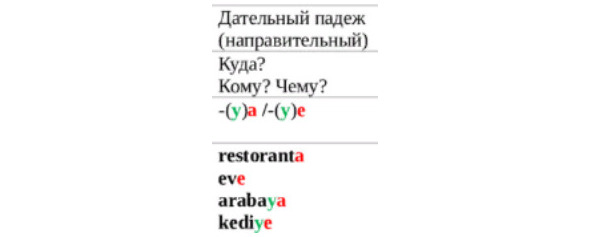 Otobüs (на автобусную) durak.. (смена согласной +3 л. ед. ч. + направительный = дательный пад.) (остановку) gitmek.. (я иду).