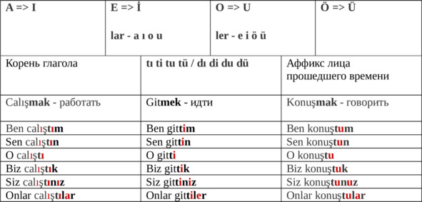 Поставьте глаголы в форму прошедшего категорического времени (-tı/-dı).