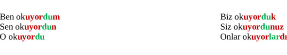 Çalışma gün.. (притяжательный афф.) (мой рабочий день) akşam altı.. (местный пад.) (в 18 00) bitmek.. (заканчивается).