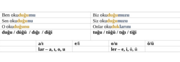Ben yaz-dığı-mSen yaz-dığı-nO yaz-dığı-Biz yaz-dığı-mızSiz yaz-dığı-nızOnlar yaz-dık-larıПрошедшее категорическое время