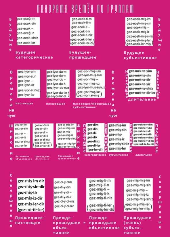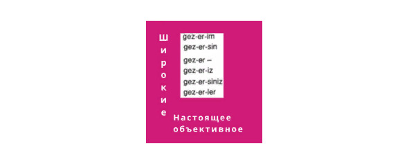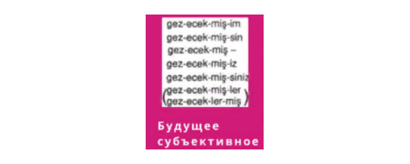 Sen ölmek.. (если бы ты умер/ реальный тип условной модальности, настоящее широкое время условного наклонения), ben de (я бы тоже) oraya (туда) gitmek.. [гидеджекмышым] (ушла/ будущее субъективное время).