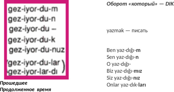 Fakat (однако) şimdi (сейчас) «Dede’ demek.. (оборот «который» – DIK) zaman (когда я говорю «Дедушка») kim.. (исходный пад.) bahsetmek.. (оборот «который» – DIK) (о ком я говорю) anlamak.. (настоящее длительное вр.) (они понимают)…