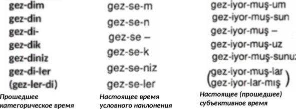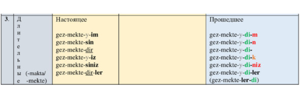 Прошедшее продолженное время (определённый имперфект -yordu) выражает действия несовершённого вида в прошлом.