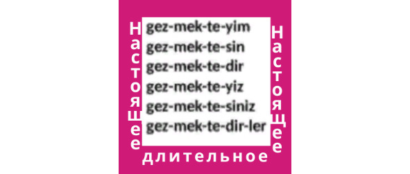 Настоящее длительное время является аналогом турецкого настоящего продолженного времени на -yor, может употребляться так же в более формальном (официальном) варианте.