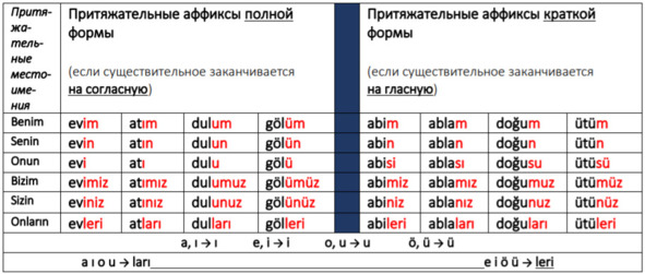 Sevgili dost.. (притяжательный афф.) (дорогой мой друг), şuan yaklaştık.. (смена согласной + родительный пад.) yargı.. (афф. мн. ч. + винительный пад.) anlamak.. (настоящее длительное вр.) (теперь я понимаю твои суждения).