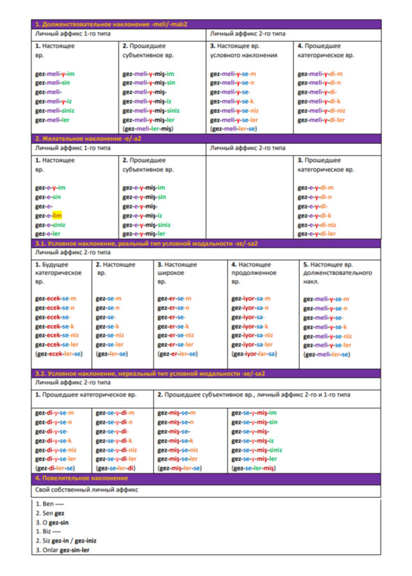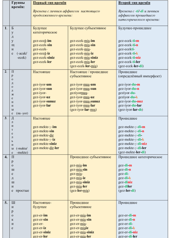 Турецкий язык. Краткий грамматический справочник (времена, наклонения, залоги, причастия)