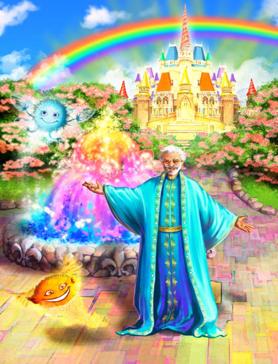 Вместе с хранителем книги миров и Проводником они вышли с площади и повернули на улицу. Все выглядело необычным: лучи солнца переливались красным, желтым, зеленым и голубым цветами, а на небе раскинулась яркая радуга, хотя дождя не было. Ее полоски постоянно менялись местами, будто каждый цвет радуги желал стоять впереди остальных.