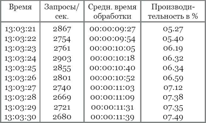 Он остолбенел. Что-то тут не так. Среднее время обработки и производительность росли, а количество запросов практически не менялось. Так не бывает.