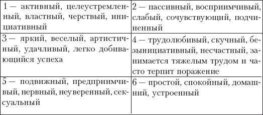 Из таблицы видно, что нечетные числа обладают гораздо более яркими свойствами. Рядом с энергией единиц, блеском и удачливостью троек, авантюрной подвижностью и многогранностью пятерок, мудростью семерок и совершенством девяток четные числа выглядят не столь выразительно.