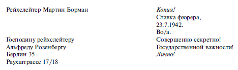 Письмо Бормана Розенбергу относительно политики на оккупированных территориях[19]