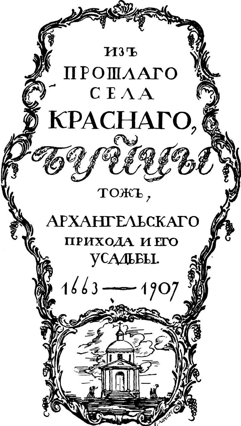 Ю. А. Олсуфьев. Из прошлого села Красного, Буйцы тож, Архангельского прихода, и его усадьбы. 1663–1907. Москва, 1908. Обложка оформлена Е. Е. Лансере. Частное собрание, Москва