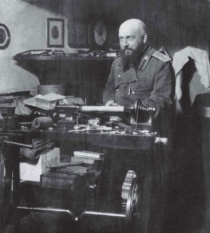 Посередине северной стены, между окнами и под прямым углом к стене, стояли постели, по обеим сторонам которых у стены было два столика светлой карельской березы с откидывающимися вперед дверцами; перед ними лежало по коврику темно-малинового сукна. Над постелями на стене висел продолговатый дагестанский ковер, привезенный моим отцом из Дагестана, когда он был послан государем в 90-х годах состоять при больном великом князе Георгии Александровиче. На ковре висел евангельский текст на английском языке: «Blessed are the peace manners» [ «Блаженны миротворцы»] – надпись, бывшая во время кончины моего любимого воспитателя англичанина Mr. Cobb[14] над его постелью. Выше, в дубовой рамке, была фотокопия с «Нерукотворного Спаса» Васнецова, подаренная нам к свадьбе В. Ко маровским (графом Василием Алексеевичем). У изголовьев висел старинный медный образок великомученика Георгия, данный мне моими родителями в моем самом раннем детстве и всегда висевший над моей подушкой, затем – образок Явления Божьей Матери преподобному Сергию, который был у С<они> тоже с детства, наконец – сломанный медный крестик с серебряным ободком. История его такова: осенью 901 года, когда мы с С<оней> еще не были женихом с невестою, была веселая охота в Красном Ржавце[15]. Я сидел верхом около дуба, держа своих собак на своре и, конечно, больше думая о С<оне>, которая стояла рядом, нежели о гоне в противоположном перелеске; во время разговора со мною С<оня> дотронулась рукою до дуба: под рукою оказался крестик, воткнутый, вероятно, кем-нибудь в дерево как сломанный. С тех пор, обложив крестик серебряным ободком, мы храним его в память беседы, которая имела для нас существенное значение.