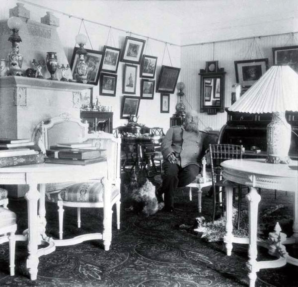 Дом Олсуфьевых на Фонтанке, Петербург. В центре – отец Ю. А. Олсуфьева Александр Васильевич Олсуфьев. Фото конца XIX века. Частное собрание, Москва