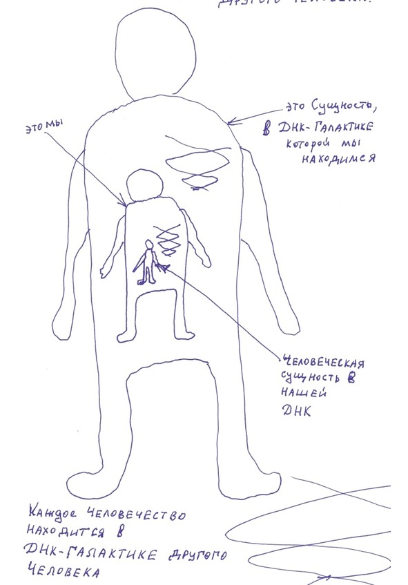 Но в нашим человеческом ДНК так же имеется планета Земля… с теми же людьми, т.е. существами, которые выполняют роль людей… а точнее, и есть тоже люди, но в сильно уменьшенном, аналогичном варианте, как мы для Сущности.