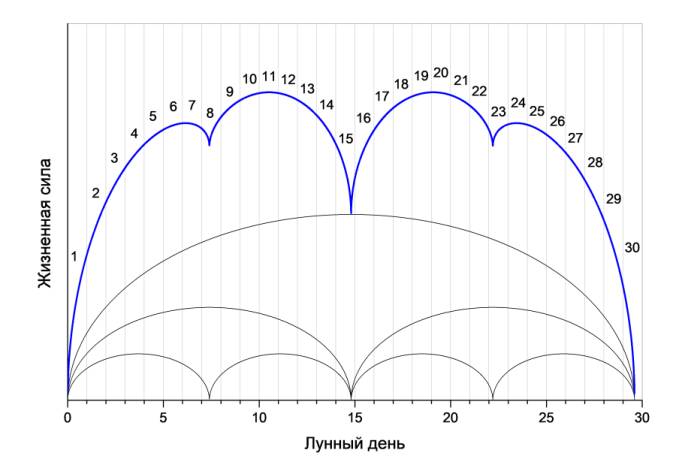 Вспомним, отчего проистекают качества и соответствующие рекомендации лунных дней. На графике Луны высота (ось Y) показывает приходящую к нам ЖС – жизненную силу. А производство из нее ЛС зависит целиком от нас.