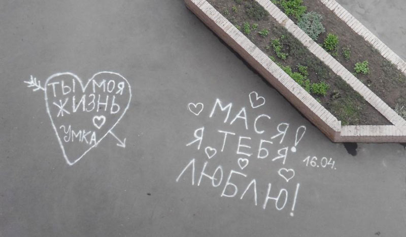 А справа, в обрамлении мелких сердечек, была более крупная надпись «МАСЯ! Я ТЕБЯ ЛЮБЛЮ!» и стояла видимо памятная дата 16.04.