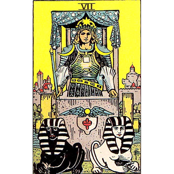 Именно он изображён на VII Старшем Аркане карт Таро, которая носит название «Колесница» или «Возничий». На ней мы видим Героя, отправляющегося в свой Путь. Это период, который каждый из нас переживает в своей жизни: он связан с окончанием школы, с первыми попытками жить отдельно от родителей, т.е. самостоятельно, с началом движения к своей цели, со стремлением к победе.