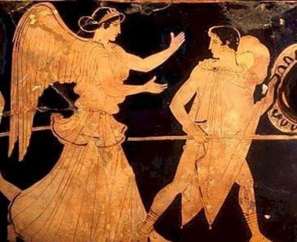 Рис. 40 Эос и Кефал. Краснофигурная вазопись, ок. 440 г. до н.э.