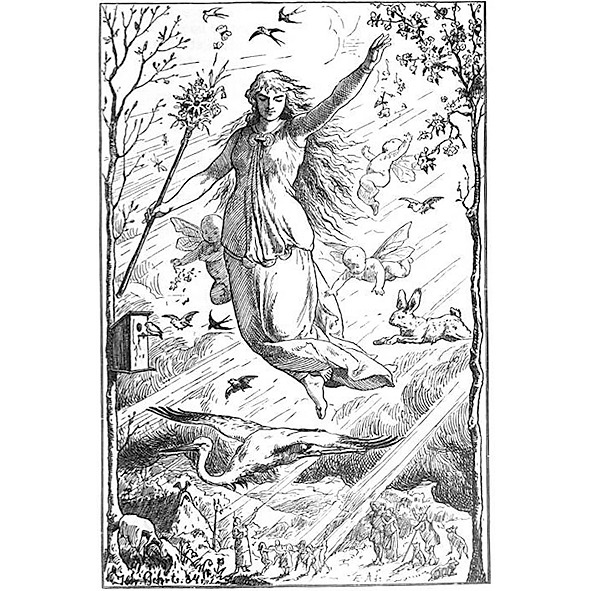 Благодаря Гримму современный мир наводнили образы данной Богини, связав её с такими, всем нам известными символами, как заяц и яйцо.