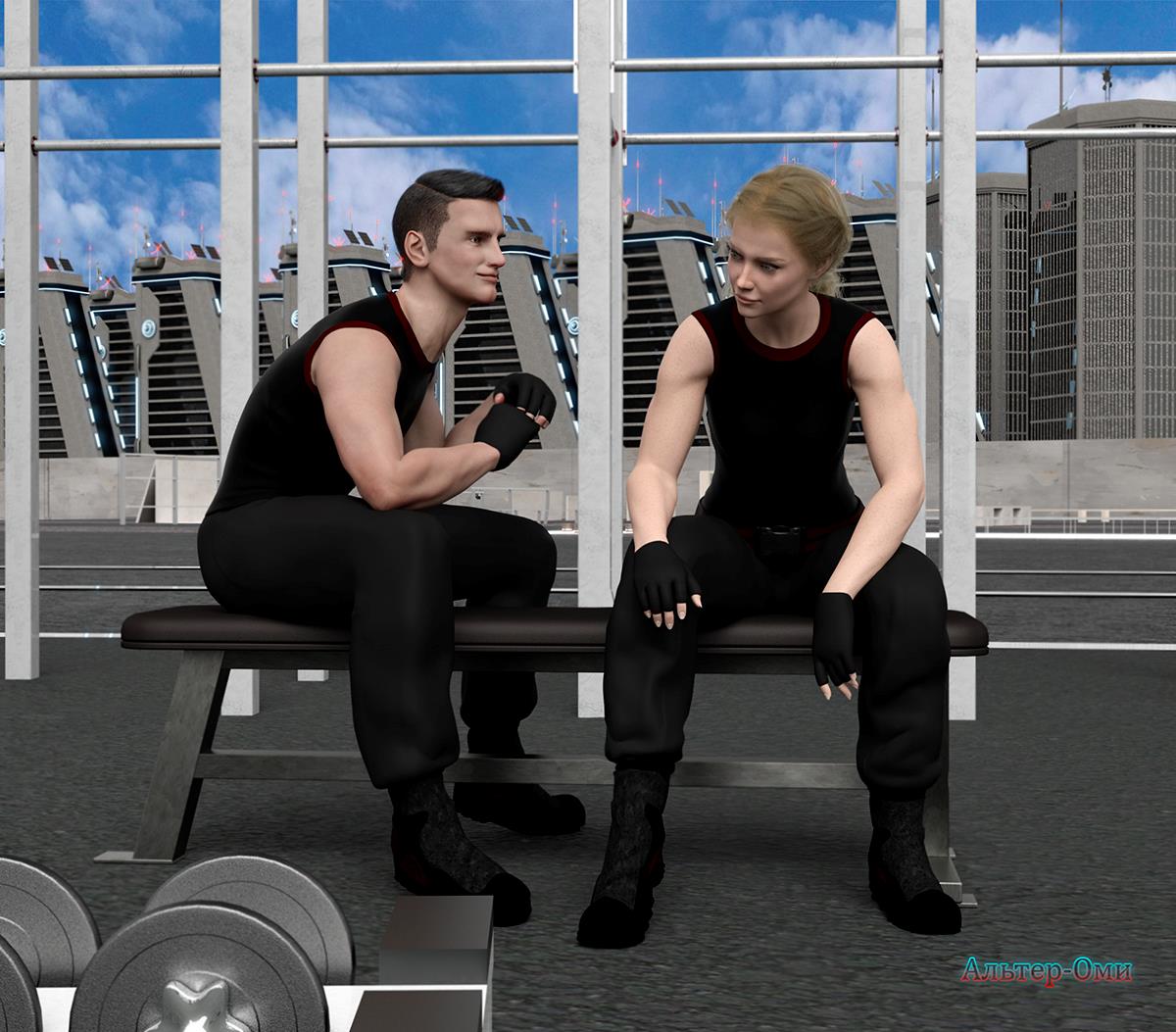 Пробежав половину круга, она увидела Чена, который подтягивался на турнике и подбежала к нему. Он видел Флэр, но не прекратил своё занятие, делая вид, что не замечает.