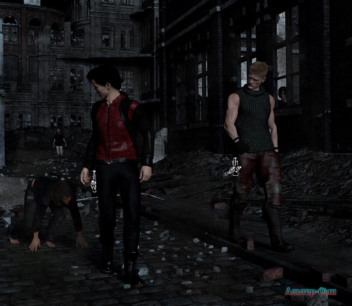 Дома тут были разрушены почти полностью, и те люди, кто смог выжить, ютились в этих развалинах. По улицам текла непонятная жижа, просачивающаяся из стен, всё это перемешивалось с отходами и нечистотами, которые местные выбрасывали прямо на дорогу. Женщин тут почти не было. Лишь больные и худющие мужчины бродили по уровню как тени в надежде что-то добыть или отобрать у других. На улицах можно было увидеть труп, который уже начинал разлагаться, а те, кто ещё был жив частенько просто сходили с ума. Свет был до того тусклым, что пришлось включить фонарик. Его луч высвечивал злые и угрюмые лица, но напасть на них не решались. Лишь один сумасшедший прыгнул на Тауса и попытался вцепиться ему в ногу зубами, но тот брезгливо отшвырнул его и пошёл дальше.