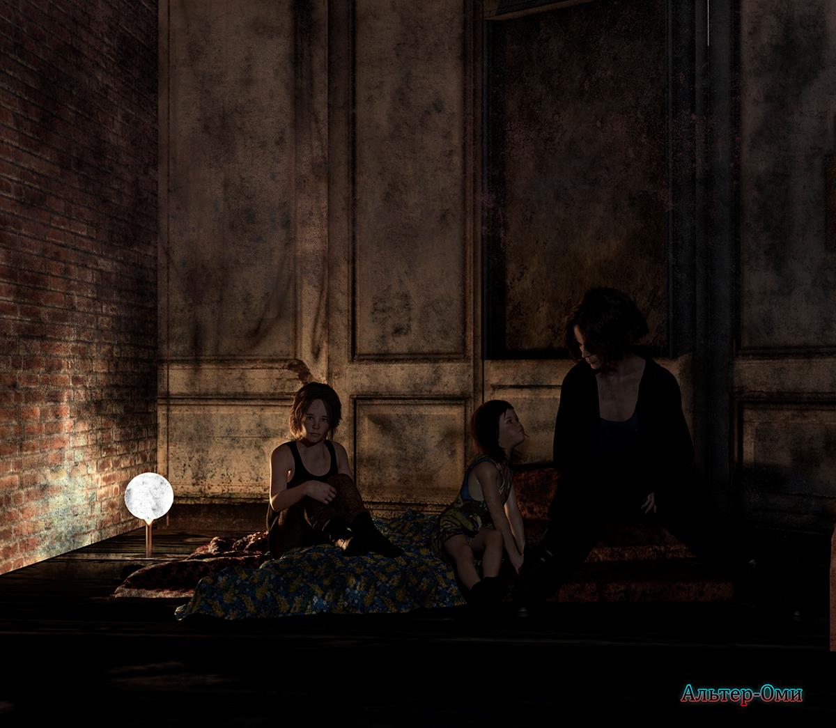В углу на тюке старого тряпья сидели те самые дети, которых они совсем недавно угощали едой. Перепуганная женщина стояла рядом, пытаясь прикрыть их своим тщедушным телом. В доме не было даже стола, а спали они, скорее всего, на полу.