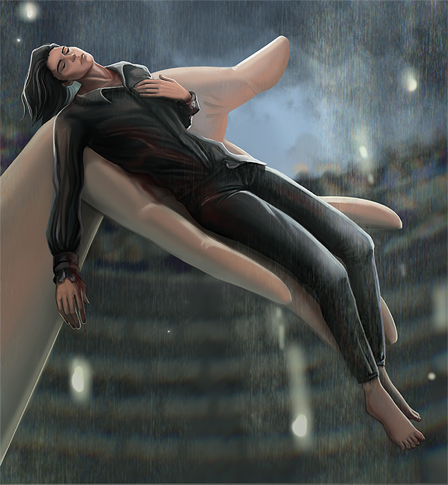 Очухиваюсь, когда меня вновь держат огромные руки. В этот раз, правда, не сжимают так сильно. Глаза у него восстановились, но не до конца: мутные какие-то. А вот из уха всё ещё льётся кровь, камень всё ещё в нём… В моих же ушах неясное жужжание: видимо, мне повредило слух. Руки не слушаются. Кажется, вдобавок мне ещё и выбило суставы, когда я играла с зубами великого святого. Бросаю на обвисшие конечности скучающий взгляд, пока гигант примиряется, как лучше меня сожрать, и замечаю: кандалы помялись. Их смяло так, что они теперь даже работать нормально не могут. На макушку упали новые капли начинающегося дождя. Я слабо улыбнулась, замечая потоки маны, вновь доступные моему измученному телу.