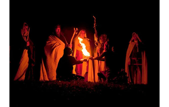 Из различных письменных источников известно, что в эту ночь, как и на другие праздники Колеса Года, во всех домах тушили все огни, и друиды возжигали новый огонь – огонь тёмной половины года, огонь зимы.