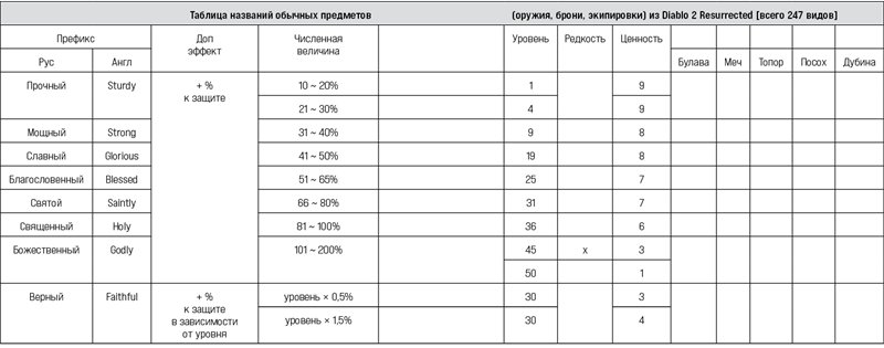 В этой игре для создания уникальных названий миллиона предметов использовались комбинации суффиксов и префиксов, обозначающих дополнительные магические свойства, например, типов оружия (копье, меч или топор). И я подумал, что мог бы применить тот же подход.