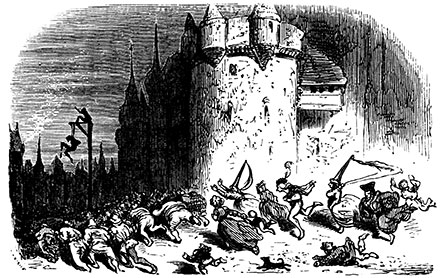 Немедля пошел он допрашивать своих слуг, приводя их в ужас своим разгневанным грозным ликом, и все они отвечали ему, как Богу Отцу в Судный день, когда будет держать ответ каждый из нас. Никто из слуг и не подозревал, какая великая беда таилась под покровом кратких вопросов и коварных выпытываний их господина, но из всего, что было ими сказано, коннетабль мог сделать вывод, что ни один мужчина из обитателей дома тут не повинен ни сном ни духом; лишь один слуга, которому было поручено стеречь сад, хранил упорное молчание. Ничего от этого стража не выведав, коннетабль схватил мерзавца за горло и в ярости задушил его. И тогда коннетабль умозаключил, что непрошеный его помощник проникал в замок через сад, куда вел с берега реки потайной ход. Тем, кто не знает расположения замка д’Арминьяков, мы сообщим, что он занимает обширную усадьбу по соседству с великолепными строениями дворца Сен-Поль. Позднее на том месте был возведен замок Лонгвиль. В то время, о коем идет речь, жилище графа д’Арминьяка через монументальные каменные ворота имело выход на улицу Сент-Антуан; замок был отлично укреплен, и высокие стены ограды, тянувшиеся по берегу реки против Коровьего острова – там, где ныне находится пристань Грев, – были снабжены башнями. Все это можно было видеть на рисунке, долгое время хранившемся у кардинала Дюпра[59], королевского канцлера.