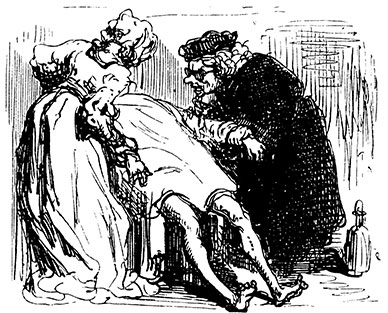 Тем временем добрая вековуха поспешила за лекарем, славным цирюльником, который жил при аббатстве, и быстро привела его в дом. Он, недолго думая, взял ланцет и вскрыл молодому человеку вену, из которой, однако же, ни капли крови не выступило.