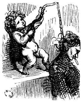 Вдруг показалась первая капля, за ней вторая, а потом кровь полилась струей, и вызванное веревкой легкое удушье совершенно прошло. Молодой человек воспрял, слегка ожил, однако, по вполне понятным естественным причинам, тут же ослабел и впал в столь глубокое бесчувствие и бессилие, что все его члены обмякли и поникли. Старая девушка, которая, не отрывая глаз, следила за великими и благодатными переменами в теле сего дурно повешенного, тронула цирюльника за рукав и, указав пальцем на достойный жалости предмет, с любопытством вопросила: