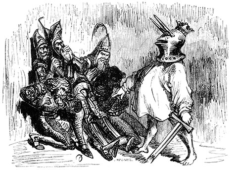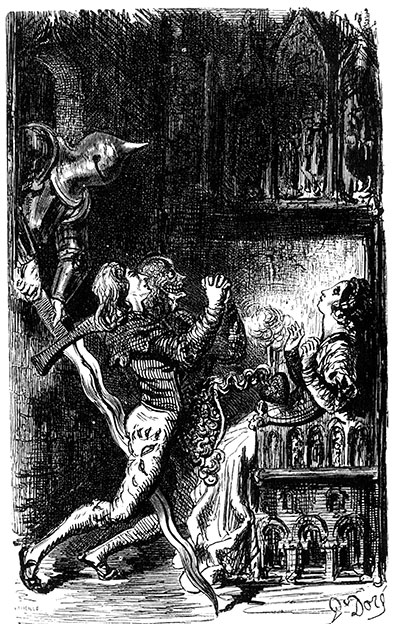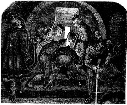 Прежде чем вновь явиться к жене, коннетабль пошел к маленькому сыну, мирно в ту пору спавшему, и, грубо схватив его, потащил к матери. Та открыла глаза – и, как вы можете себе представить, весьма широко открыла, – услыша детский плач. С превеликим волнением увидела она своего малютку на руках у коннетабля; правая рука д’Арминьяка была в крови, и красными от ярости глазами поглядывал он то на мать, то на сына.