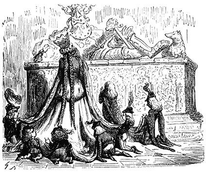 Король протянул свой маленький кинжал девице, чьи слова вскружили ему голову до того, что он потерял всякую охоту к еде и питью. Он стал готовиться к переезду, желая поселить свою новую зазнобу на улице Ласточки, в одном из своих особняков.