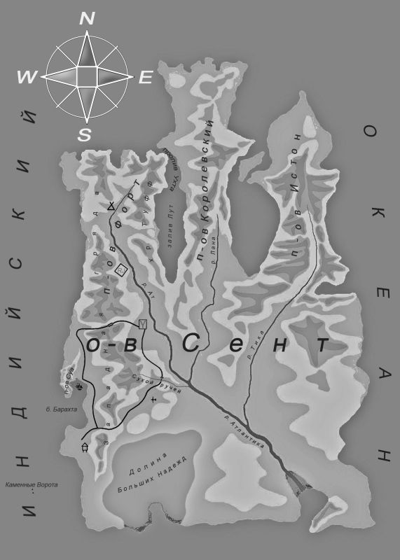 Имелось и еще одно большое невозделанное поле для приложения творческих сил и фантазий всех желающих, а в первую очередь тех, в ком силен был природный дух естествоиспытательства. Территория Острова, которая вовсе не была плоской и скучной, как стол, а состояла из многочисленных живописных и разнообразных по своим географическим формам уголков, нуждалась в детальном поименовании. Это занятие особенно пришлось по душе Константину, Никите и Андрею, а также малышке Джулии, которой через месяц должно было исполниться четыре года. За неделю они снабдили карту Сента, наверное, несколькими сотнями названий, чем поставили в тупик и Питера, и всех остальных. В конце концов общим голосованием решили, что хорошо лишь то, что в меру, и утвердили названия наиболее крупных географических объектов, которых набралось около двух десятков. Вклад Джулии и в количественном, и в качественном отношении оказался далеко не последним; в частности, именно она была «открывателем» полуострова Суа, залива Лут и долины Больших Надежд. В этой долине были высажены апельсиновые деревья, а большие надежды Джулия связывала, конечно же, с их урожаем. Теперь словосочетание «туа-суа», означавшее «ты – дракон!», стало самым страшным ругательством Острова.
