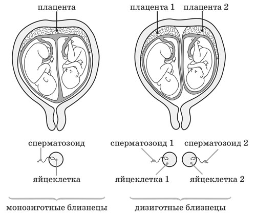 Рисунок 5.0220. Монозиготные и дизиготные близнецы