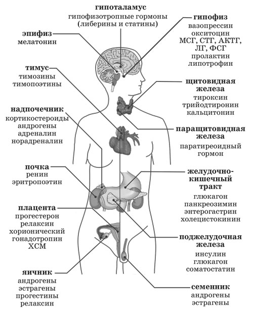 Рисунок 5.0650. Гормоны, производимые железами внутренней секреции