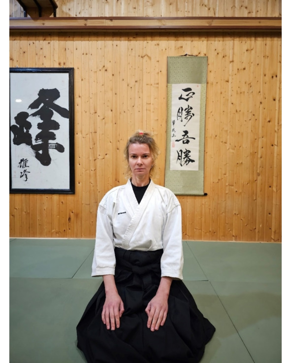 Это происходит потому, что центр восприятия партнёра А находится или в кончиках его пальцев, или в каком-либо другом месте тела. Затем А «переключает» своё сознание в единую точку нижней части живота и обретает стабильность. Тогда партнёру Б будет сложно поднять руку А (фото 11).