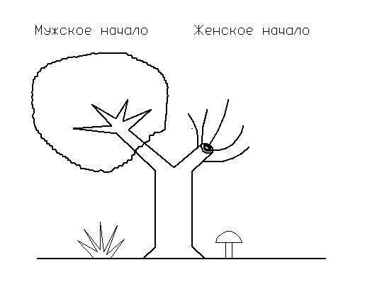 Как мы видим из рисунка, одна часть кроны спилена. Но человек и его психика – это часть живой Природы, а мы знаем, что в месте спила дерево всегда дает новые побеги, пытаясь выжить. То же самое мы и наблюдаем у ТГ. Мы можем «подавлять» ТГ в себе, всячески ее «прижигать» в себе, но полностью уничтожить ее невозможно, это может означать только гибель всего человека.