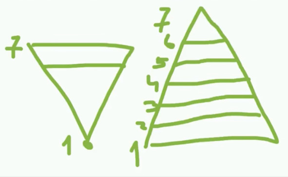 Нарисуем идеальную энергетическую пирамиду: внизу – много, а наверху меньше.