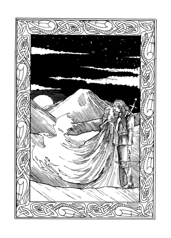 Когда путники вновь углубились в чащу в надежде уйти от злосчастного озера, пошёл снег. Он опускался на их волосы и плечи большими мягкими хлопьями, таял на длинных ресницах Сольгерд лишь когда они касались горячих щёк, и тогда он стекал по ним потоками слёз.