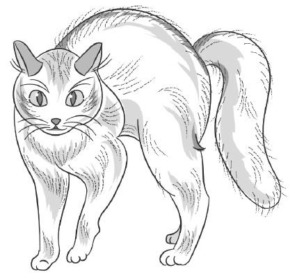 Коммуникативная функция кошачьей шерстиИногда шерсть на теле мурлыки «встает дыбом» – вся или единичные волоски. Это называется пилоэрекцией. Благодаря ей мы можем оценить степень эмоционального напряжения, которое кошка испытывает в конкретной ситуации. За счет пилоэрекции кошка старается казаться больше, чем она есть, чтобы напугать противника: «Не подходи! Видишь, какая я большая и страшная?!» (рис. 2).