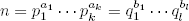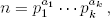 donde p1 < … < pk son primos, y a1, …, ak son números naturales no cero.