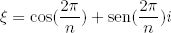 y 0 ≤ k ≤ n−1. Estos n números complejos son muy importantes y se denominan las ráıces n-ésimas de la unidad. Los podemos situar en la circunferencia de radio 1 al dividirla en n-ángulos iguales. Por ejemplo, las ráıces 4-ésimas de la unidad son {1, i, −1, −i}.